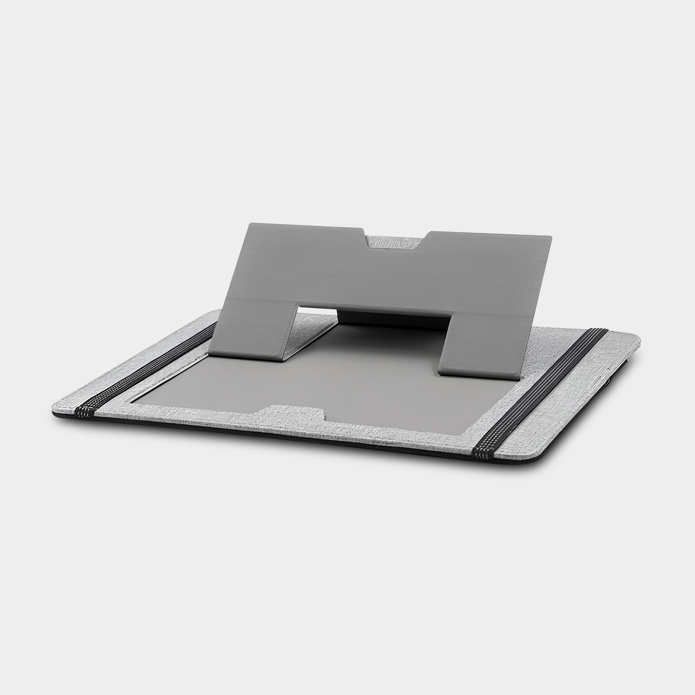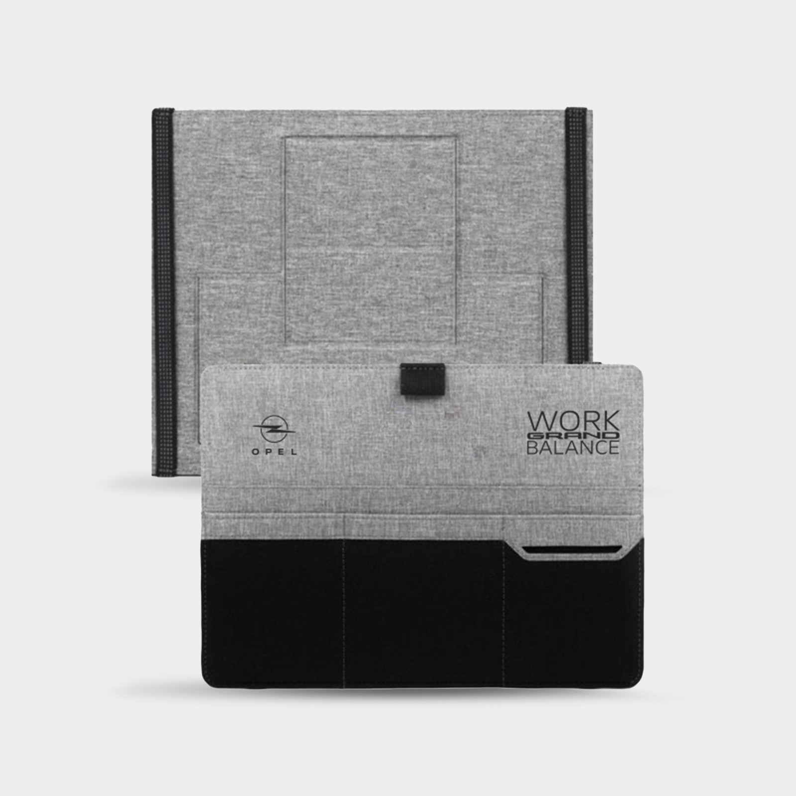 Discover the GRAND STAND Clipboard - the versatile laptop utility belt for modern nomads. Made from recycled PET bottles (RCS-certified), it offers an environmentally friendly solution for the mobile workplace. With elastic straps, the GRAND STAND Clipboard can be securely attached to the laptop and has several pockets for smartphone, notebook, pens and more. The integrated, foldable laptop stand ensures an ergonomic working position and optimum ventilation of the device. Lightweight yet robust, it can be folded flat and fits easily into any bag - ideal for on the go. With the slogan “Work GRAND Balance”, the GRAND STAND clipboard combines functionality and style for the modern working day.