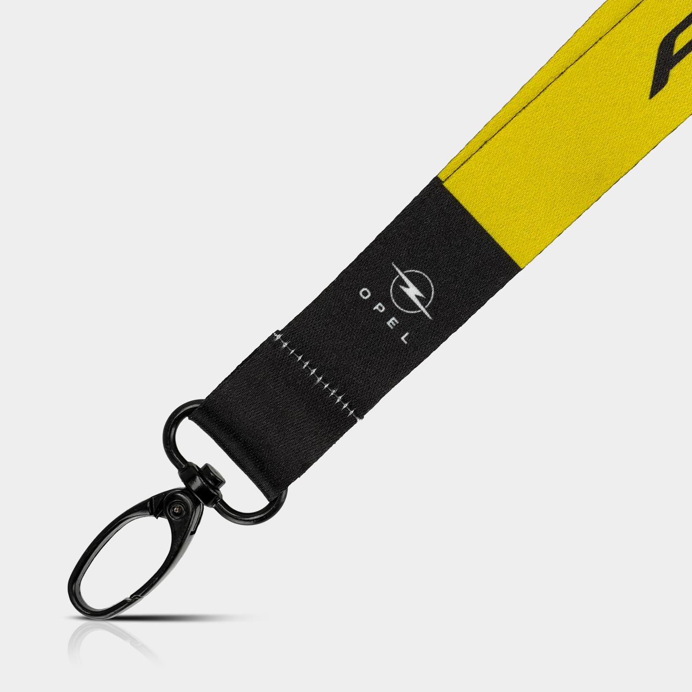 Lanyard elegante con il caratteristico design Astra in giallo e nero. Ideale per chiavi, badge o pass per eventi, sia nella vita quotidiana che durante le manifestazioni. Grazie al robusto moschettone, gli oggetti possono essere fissati in modo sicuro e sganciati rapidamente in qualsiasi momento. Il materiale di alta qualità garantisce un elevato comfort e una lunga durata. Un accessorio pratico per tutti gli appassionati Opel e un vero elemento distintivo dal look moderno.